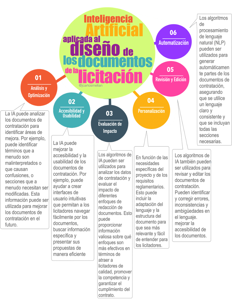 Para hacernos una idea, en un área que me interesa particularmente, que es el de la mejora del diseño de los documentos de contratación pública (legal desing), la IA ayuda a identificar y corregir errores, a mejorar la claridad y la concisión, y a hacer que los documentos sean más fáciles de entender para los licitadores, incrementando la participación y la competencia. En definitiva, haciendo más eficiente el proceso.