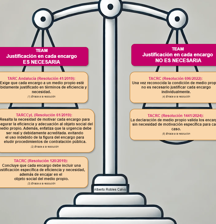 Conviene recordar que anteriormente había otras posturas que sí propugnaban y defendían la obligación de justificación de la urgencia y la eficiencia (debería ser más barato el encargo a medio propio que el «precio de mercado»). En un déjà vu de lo que acontecido con los cambios de criterio en relación a los contratos menores, o con los umbrales de saciedad (en este caso por sentencia judicial)… podríamos recordar ambas posturas: