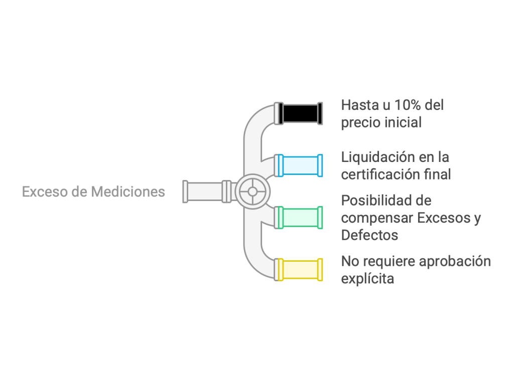 1.- El exceso de mediciones, que en global no representen un incremento del gasto superior al 10 por ciento del precio del contrato inicial (se refiere al precio de adjudicación).