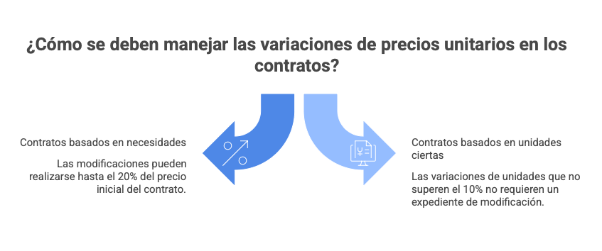 - Umbrales económicos: Si el valor de la modificación excede el 15% del precio inicial (en contratos de obras) o el 10% (en el resto de contratos).